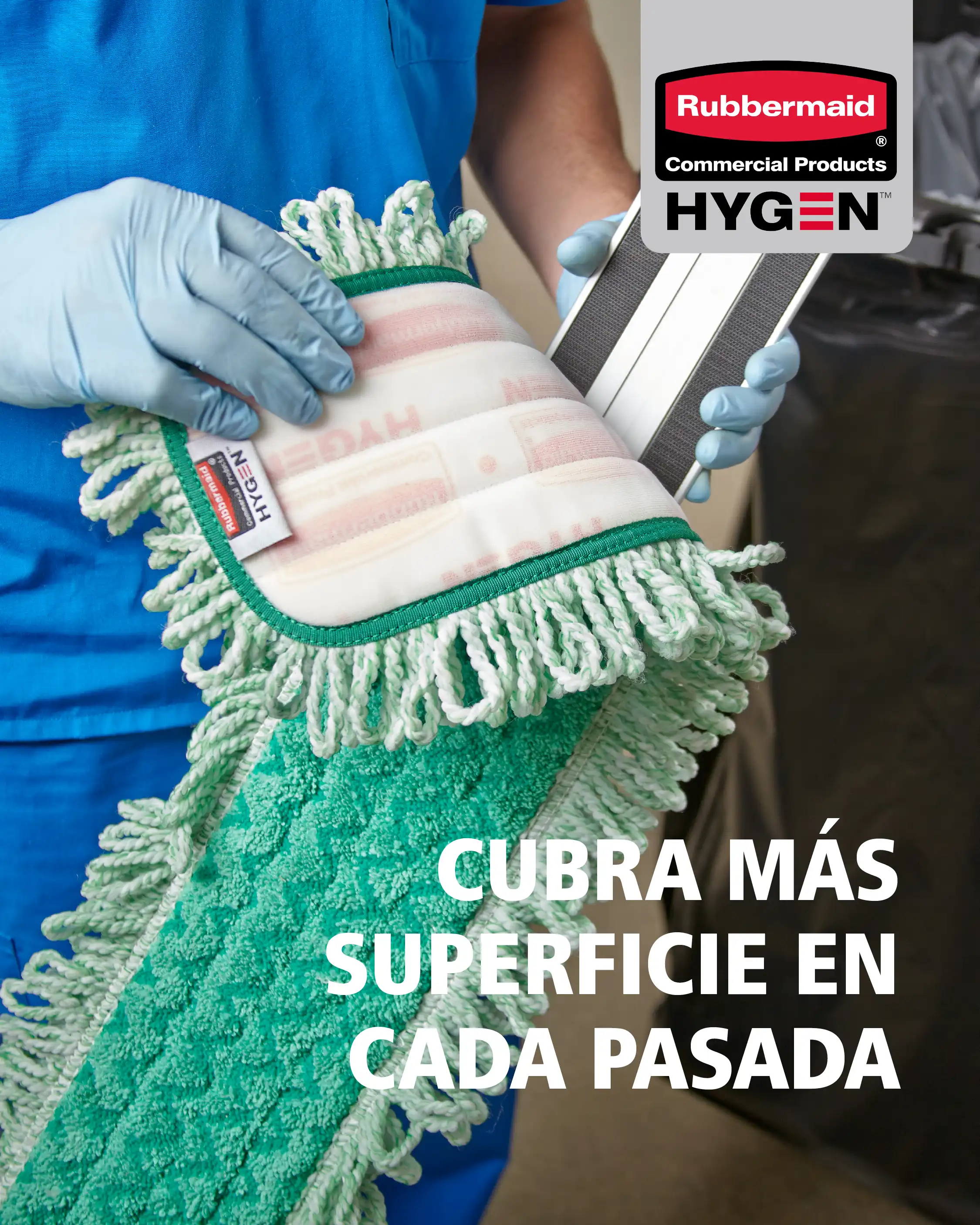 El Armazón Flexible HYGEN™ limpiar esquinas y superficies de difícil acceso. Su diseño arqueado atrapa la suciedad y los residuos, llevándolos al centro para una recolección eficiente. Además, cuenta con 5 opciones de mopas de microfibra HYGEN™, para ofrecer la solución perfecta a cada necesidad de limpieza.