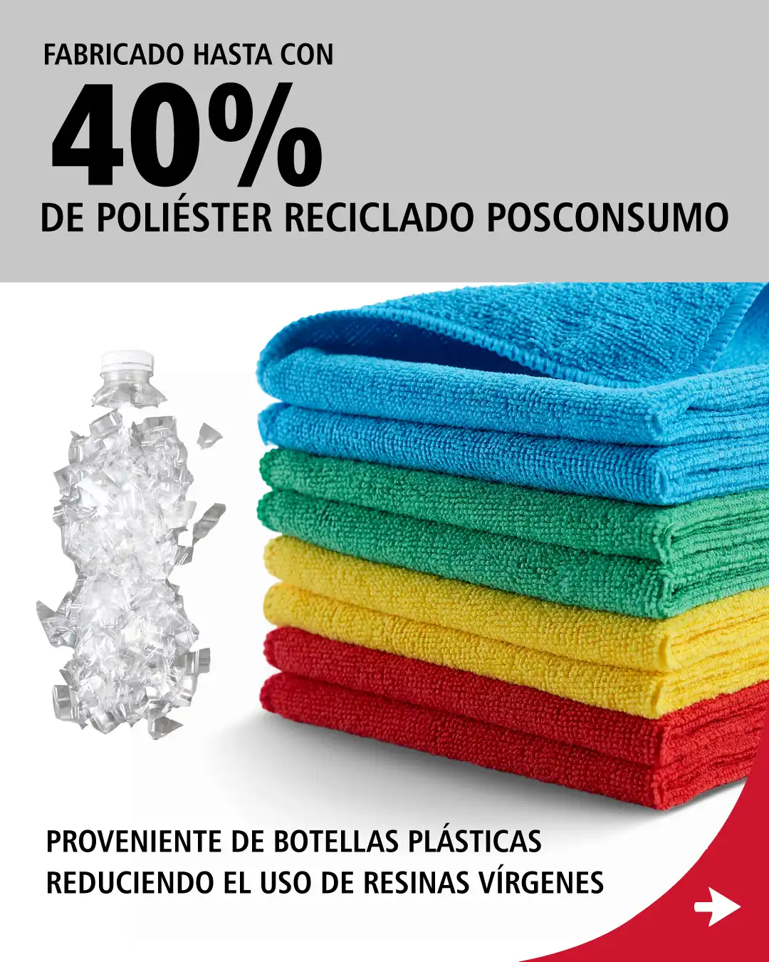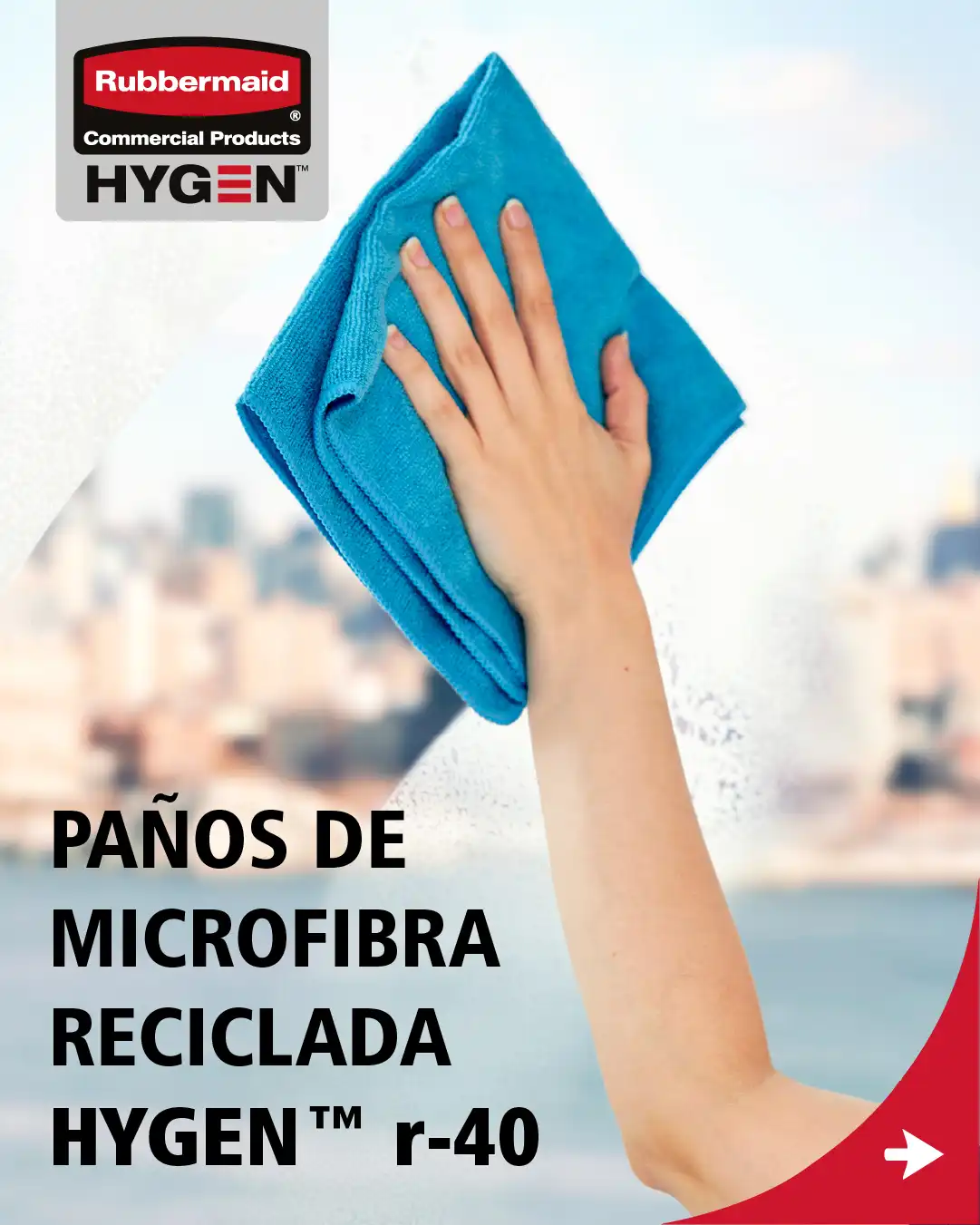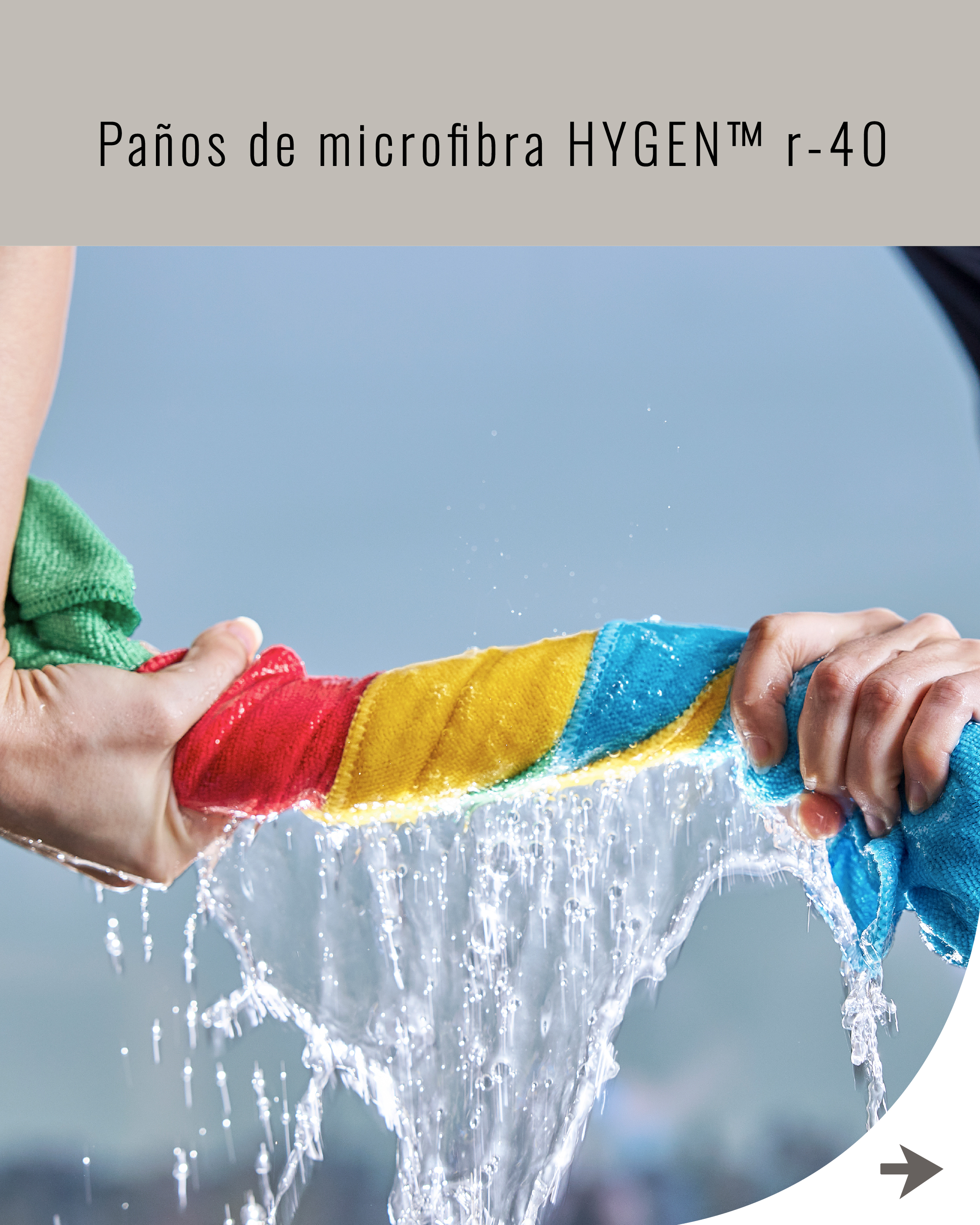 Los nuevos Paños de microfibra reciclada HYGEN™ r-40 no solo ofrecen una limpieza superior, sino que optimizan los recursos de su negocio. Su durabilidad de hasta 200 lavadas comerciales (100 con cloro) disminuye la necesidad de reemplazos y reduce gastos operativos, mientras que su composición con un 40 % de poliéster reciclado posconsumo impulsa sus objetivos de sustentabilidad corporativa.