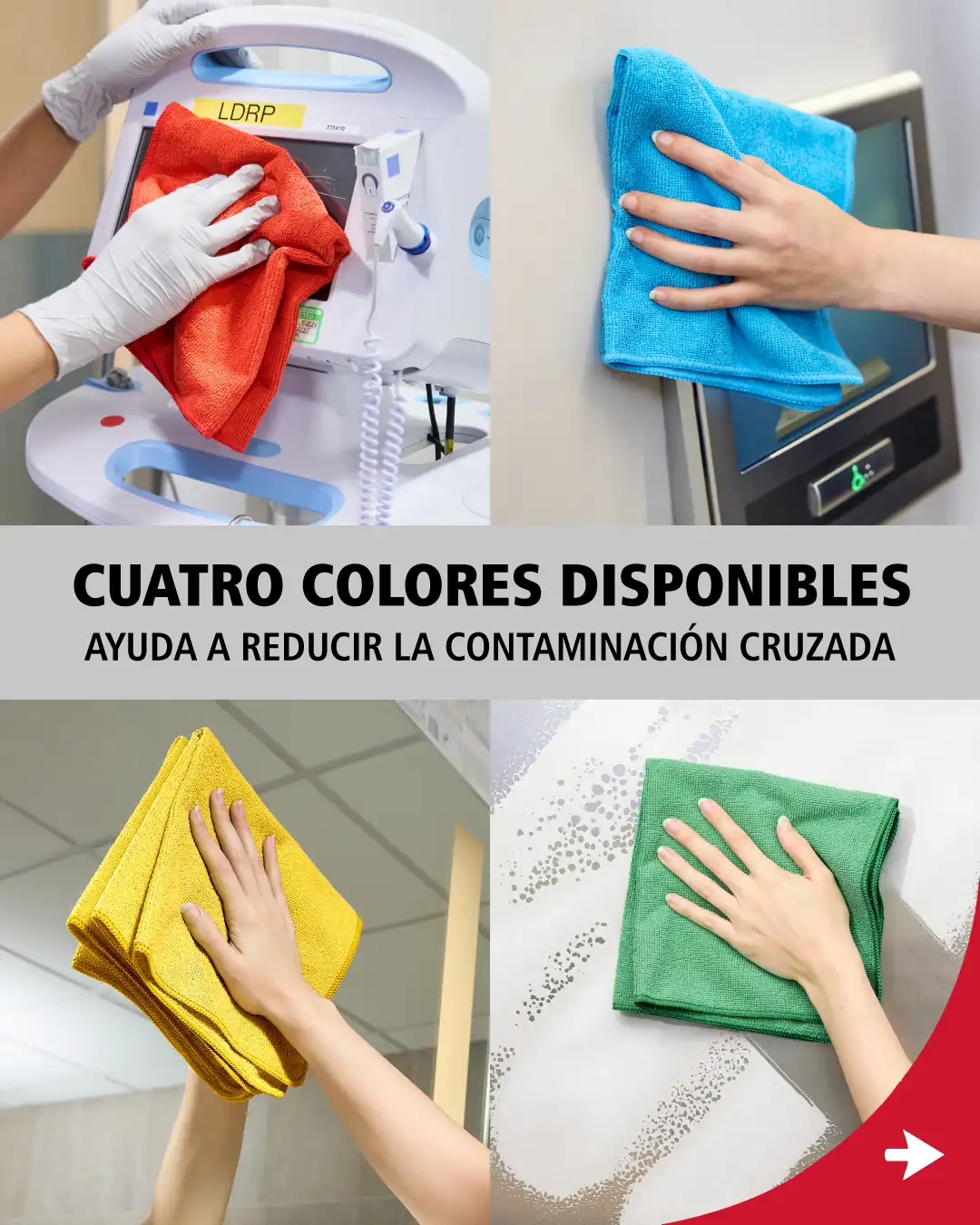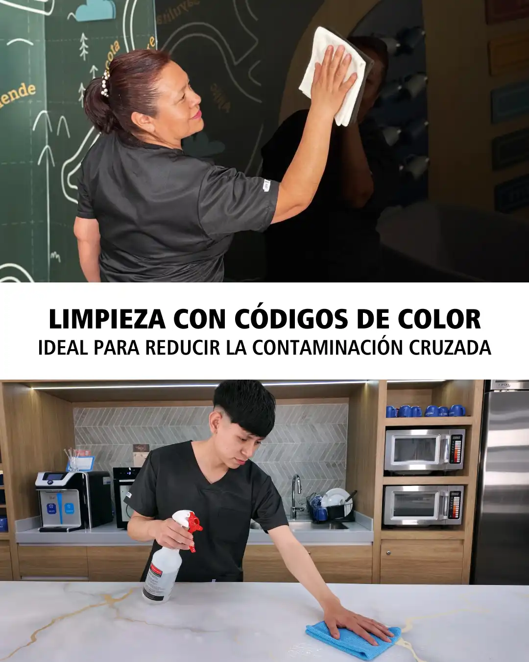 Los paños de microfibra de uso general están disponibles en dos colores para facilitar la separación de tareas, mejorar la higiene y reducir riesgos de contaminación cruzada.