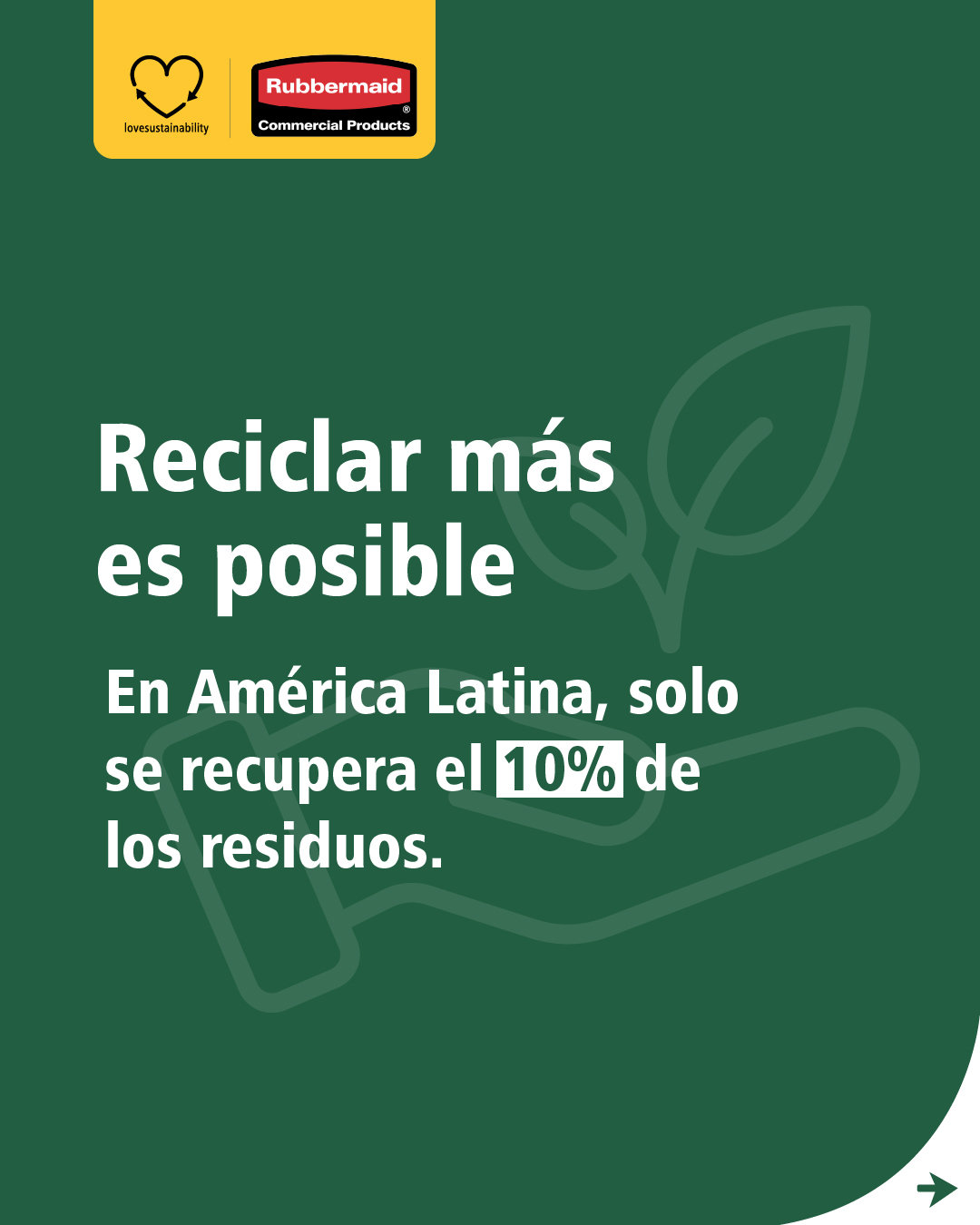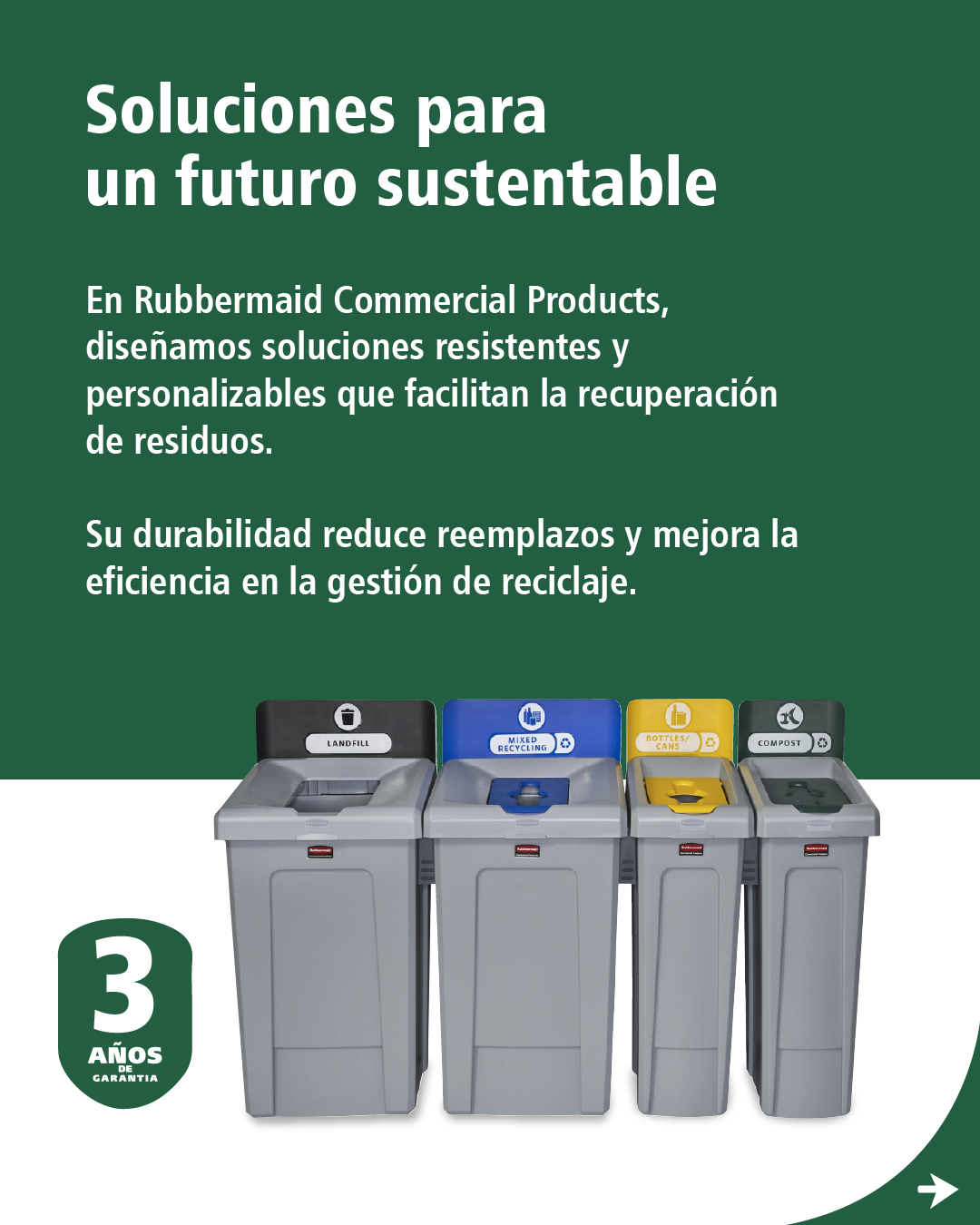 En Rubbermaid Commercial Products, ofrecemos soluciones sustentables que no solo optimizan el manejo de residuos, sino que también ayudan a su empresa a cumplir con estándares ambientales más altos.