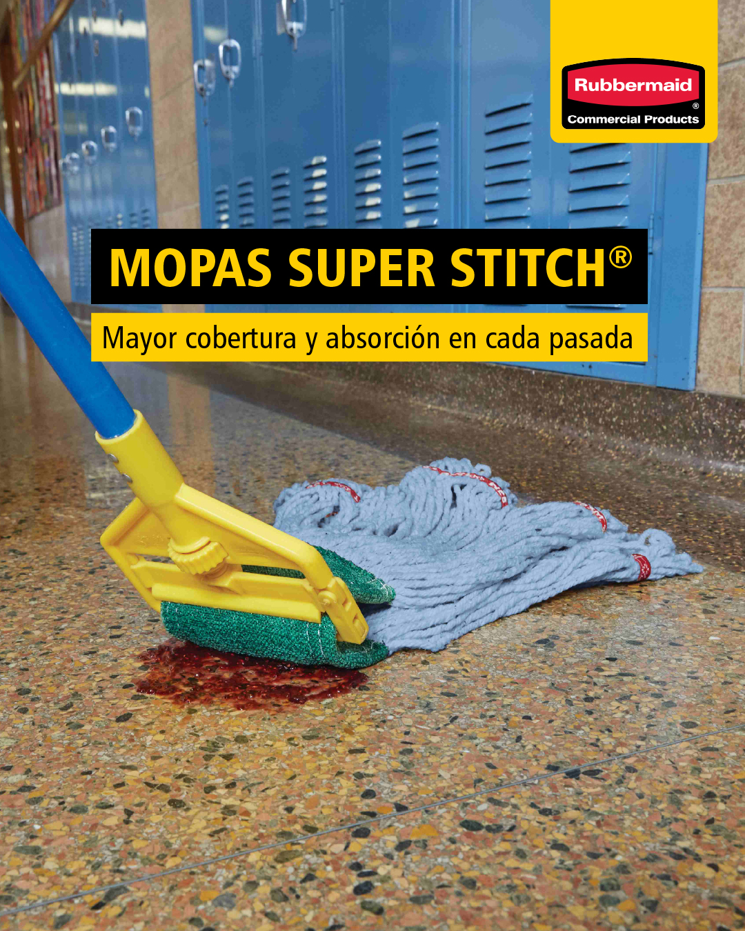 Las Mopas Super Stitch® maximizan la limpieza en grandes superficies. Su diseño de alta resistencia ofrece mayor absorción y cobertura, reduciendo el número de pasadas.