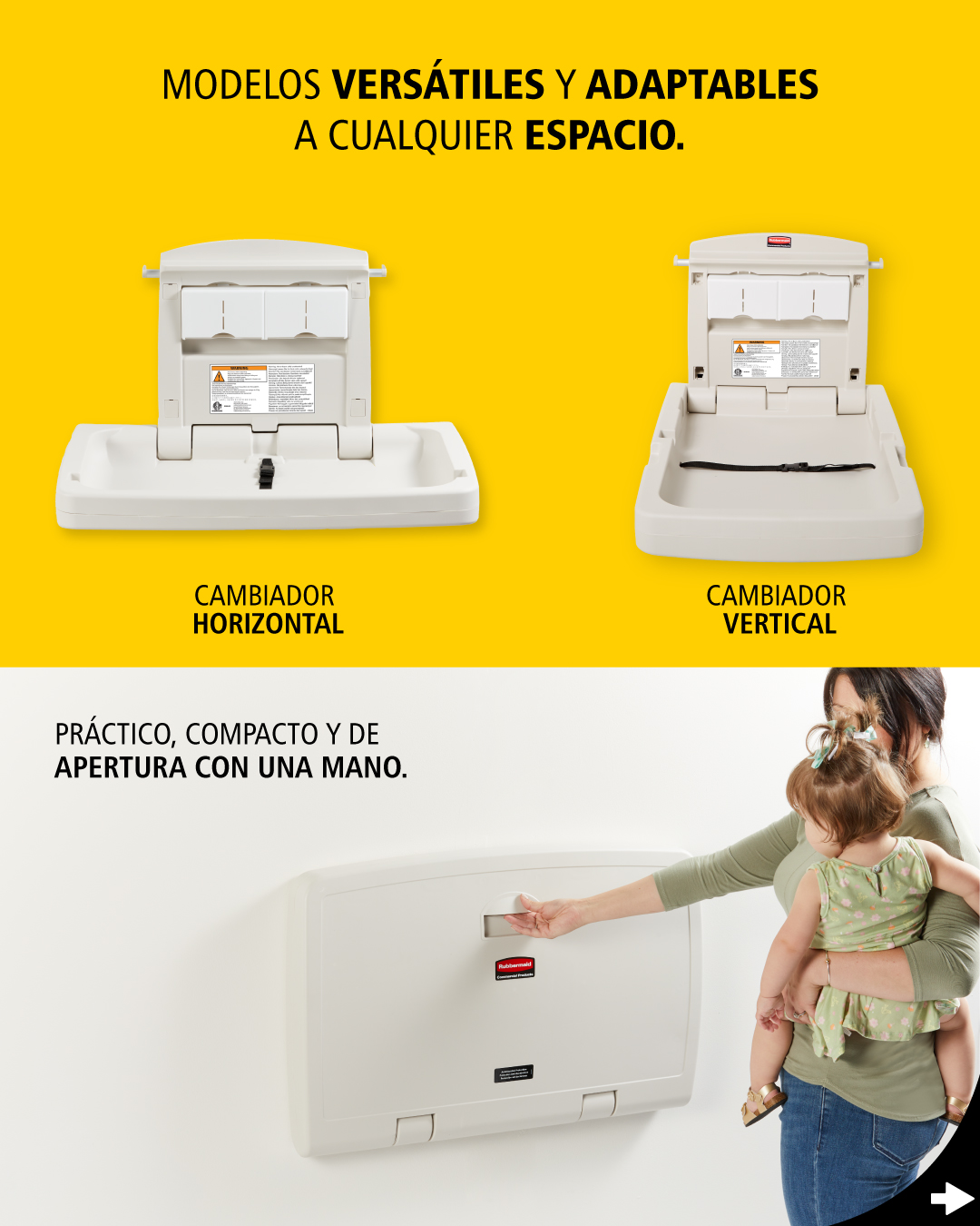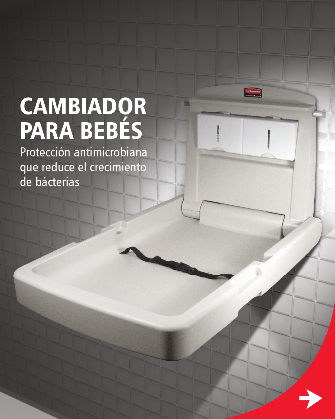 La Estación para Cambio de Pañales de Rubbermaid Commercial Prodcuts transforma la experiencia en baños comerciales. Su diseño seguro, con protección antimicrobiana y espacios prácticos, facilita el cuidado de los más pequeños en hoteles, restaurantes y comercios.