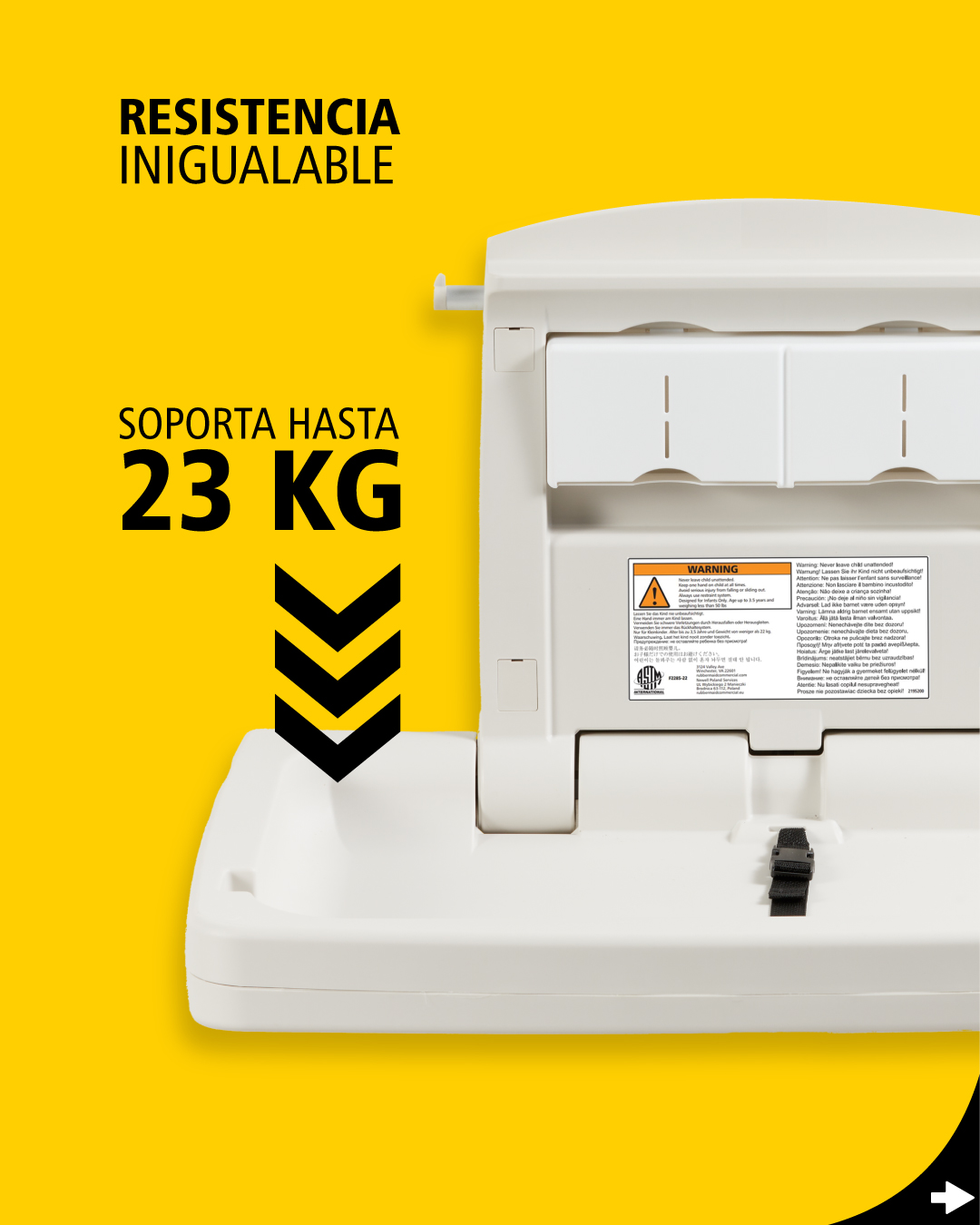 Antes soportaba 11 kg, ahora soporta hasta 23 kg, brindando mayor seguridad y confianza en cada uso. Porque el cuidado también está en los detalles.