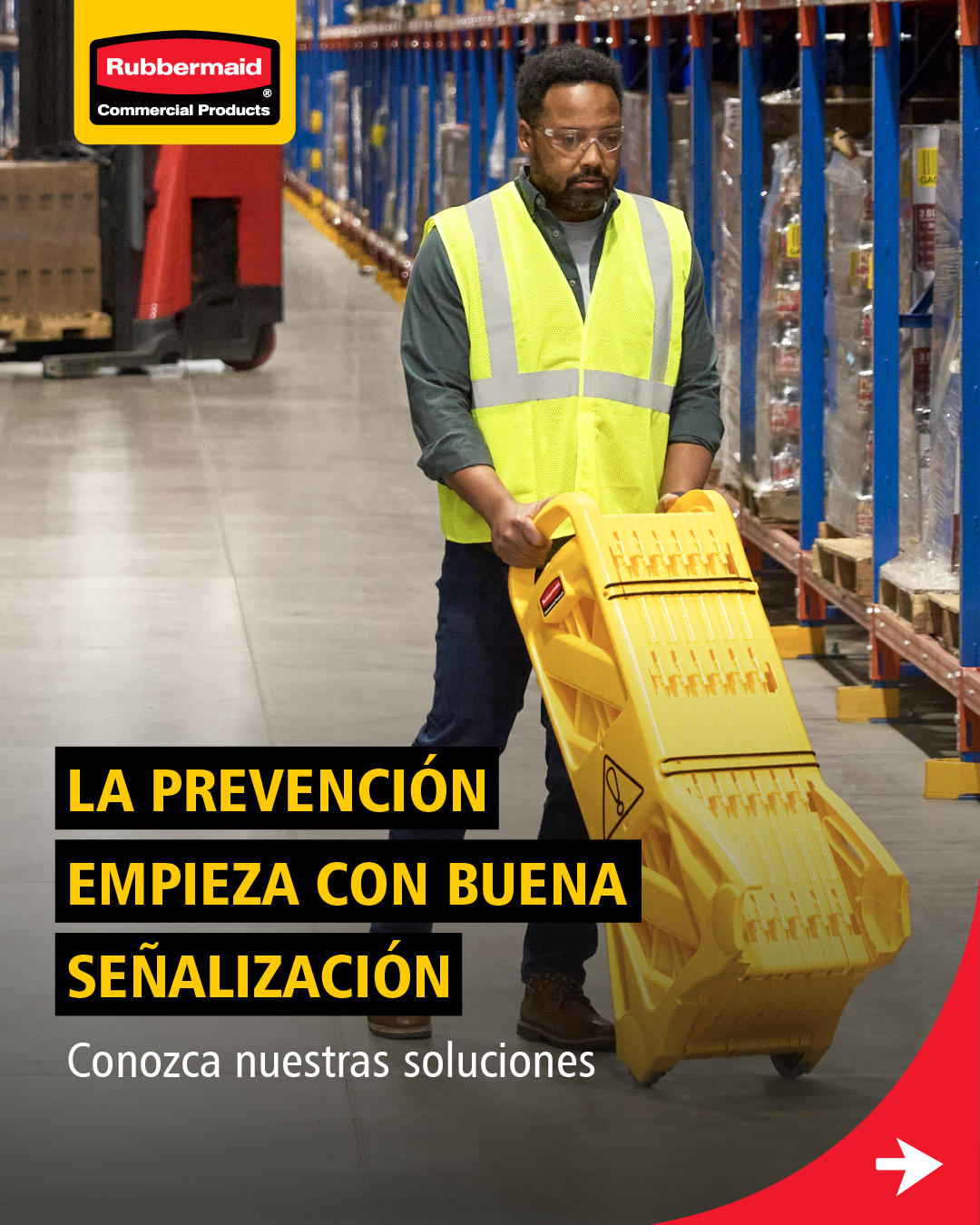 En Rubbermaid Commercial Products nos preocupamos por la seguridad de nuestros usuarios, es por ello que, ofrecemos soluciones que reducen accidentes laborales a operarios en instalaciones logísticas para aumentar su eficiencia en su labor diaria.⚙️