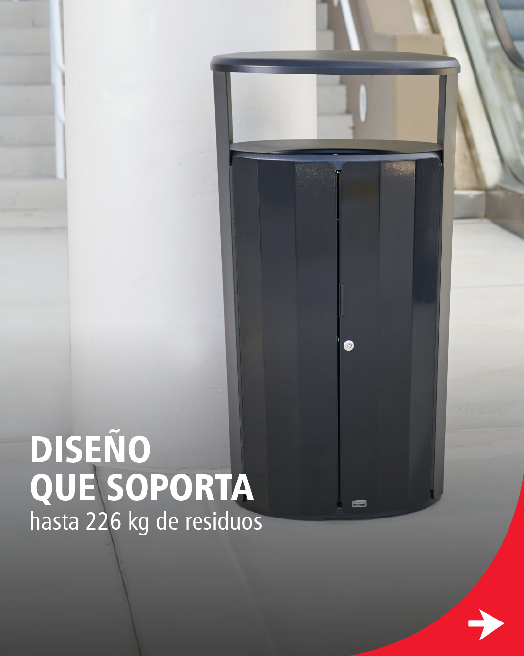 El contenedor Resist® ofrece desempeño superior en espacios de alto tráfico sin comprometer la estética. Ideal para mantener áreas limpias, seguras y con una presentación impecable.